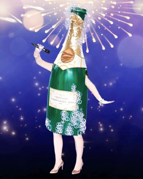 Edsilia Rombley: The Masked Singer Champange bottle costume: created by Tentacle Studio, New Year TV Special, Nederland.